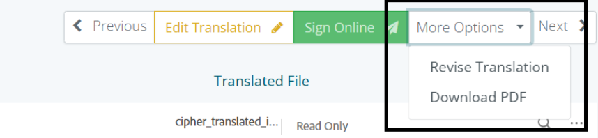- Once Review is completed and translated file is accurate, Click More Options.